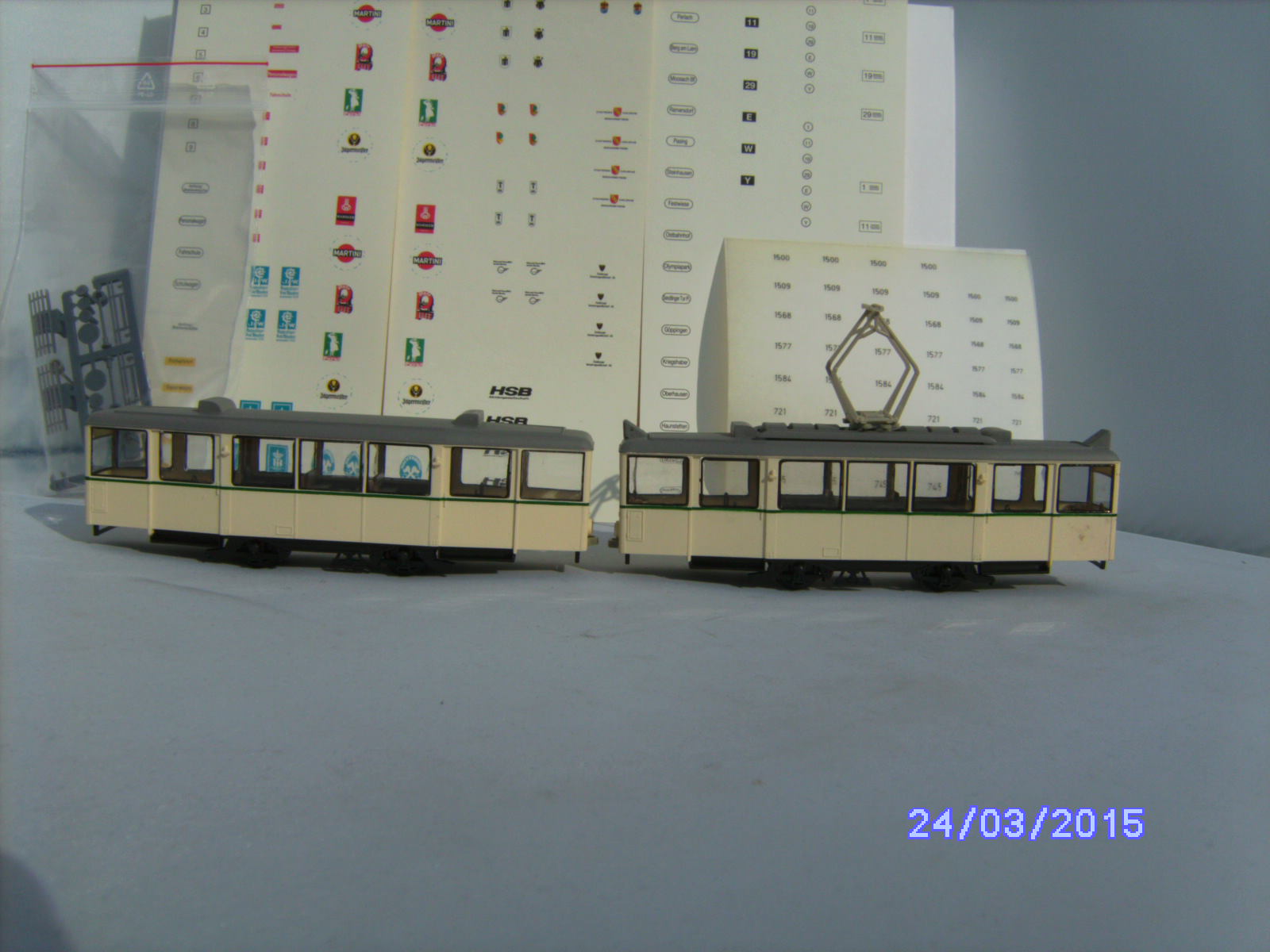 Drei selbstklebende Beschriftungsbögen zum Anbringen der Kurse, Linien und Ziele, Werbetafeln und Stadtwappen sowie ein Bogen mit Anreibezahlen für vorbildgerechte Nummerierung der Fahrzeuge (91001 und 91002). Als Besonderheit wurden in dieser Serie die milchigen Fenster der Souveniermodelle durch einzeln eingesetzte Fenster ersetzt, deren Rahmen mit Prägefolie schwarz bedruckt wurden. Auch eine vorbildnahe Inneneinrichtung wurde zusätzlich eingebaut. Der Wagenboden im TW ist für die Anbringung fahrfertiger Antriebseinheiten von PMT oder LH vorbereitet.